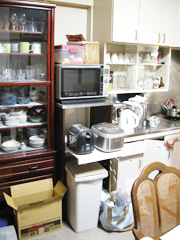 収納スペースが少なく、食器棚やPCデスクなどに物が散乱している