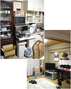 | ・収納スペースが少なく、食器棚やPCデスクなどに物が散乱している |