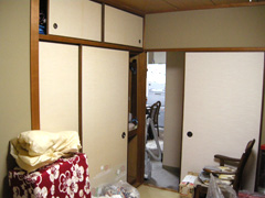 | ・二枚引きのふすまを外しても袖壁が残るので、開放感がない。また5cmの段差があり、転倒のおそれがある |